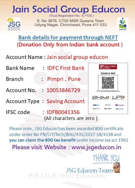 You can send below message to any Indian Donor who wants to make payment from his/her bank account to Educon bank account.