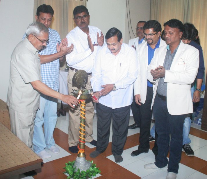 Chief Guest Shri Chandrakant Rawal and Jain Social Group International Federation former President Shri Sharad Shah inagurating the Meet