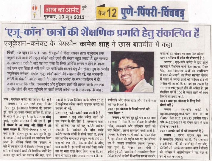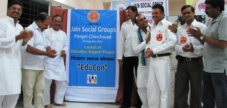 JSG EduCon Launch : Under the umbrella of Jain Social Groups International Federation, Maharashtra Region, the group in Pimpri Chinchwad, Pune initiated this project. EduCon was launched with 40 deserving students on 15th April 2012 under the Group’s Presidentship of Mr. Kamesh R. Shah along with Mr. Deepak Daga and Mr. Siddharth Shah.