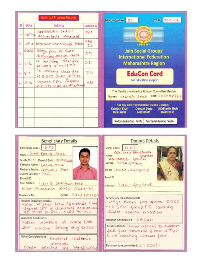Educon name was derived from Edu Of Education and Con of Connect i.e. EduCon, connecting the Donor and the Student for Education purpose. This founding concept was implemented through this Educon card which gives full detail of the Educon student to the Donor to establish system based total Transparency