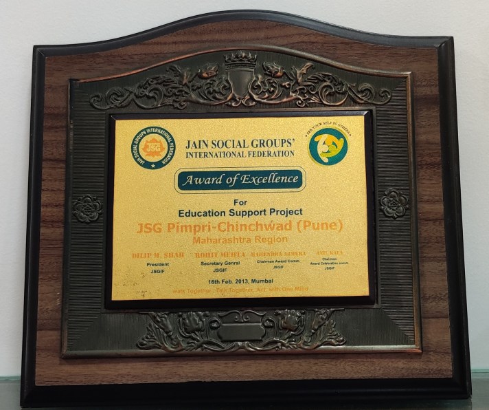 Educon in its first year itself won hearts of many and recived accolades for its founding concepts and unique transparency through Educon card. It received an International Award of excellence for Best Education Support Project on 16th Feb2013 from JSG International Federation President Shri Dilip Shah at Mumbai