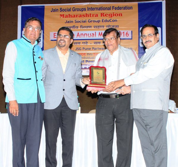 We had 300+ attendies for the Annual Meet, which was presided by Shri Sharad Shah, JSGIF Past President and the Chief guest was Mr Avinash Dharmadhikari, Director Chankya Mandal. We recieved highest one day donation of 33 lacs .Jain Social Group Pune Main members contributed highest Rs 7.00 lacs. M/s Empathy Foundation, Mumbai academically adopted extremely poor six EduCon girl students pursuing MBBS and donated Rs 5 lacs. 11 Educon students reached career point and secured good jobs. ALL became proud Educon Donors, donating back from their first earnings to support other needy students and continuing the chain of educon to make it self sustainable and scalable. Best Student award given to Darshan Shah and Renuka Munnale. Rasika Kardile felicitated for scoring 96% in HSC without any coaching classes.