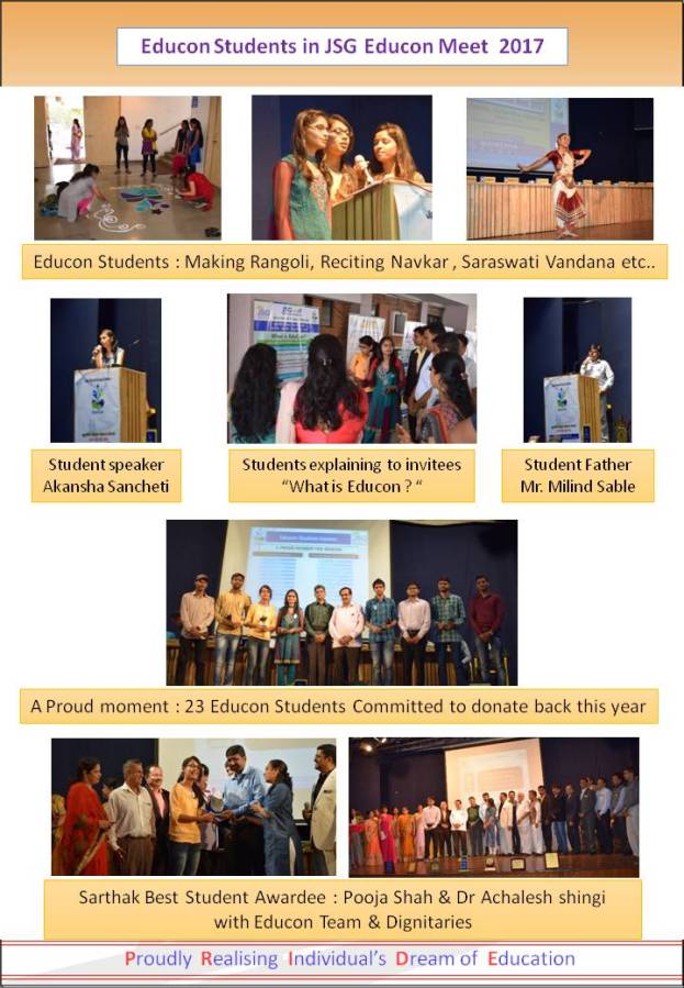 Educon students participated and also partly organised the event. The student awardee Dr. Achalesh Singi is a very dedicated, sincere and focussed student. He saved his pocket money and donated the amount to Educon, a great gesture. Pooja is an intelligent and hard working student with zeal to excel in her field and has dream to work for Educon cause.