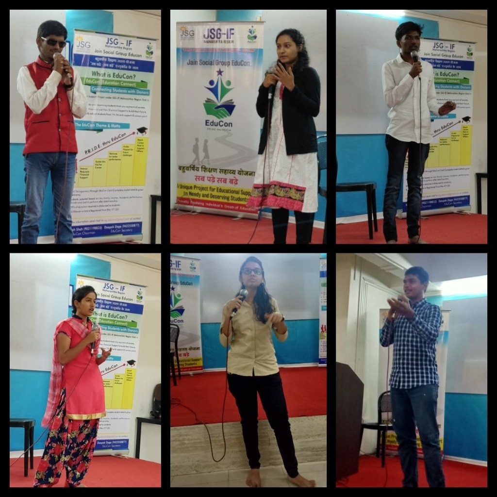 Many Educon students shared their experience and views during the meet. Yukta Rhinde , a Pharmacy student committed to excel in her life spoke first time in English on stage, Jadhav became very emotional as without Educon support it may not have been possible for him to pursue his dream nursing career and Vaibhav Baviskar is proud to be an Educon student since first year as he got placement in the reputed automotive Company, Volkswagen Ltd. We regret for the voice quality.